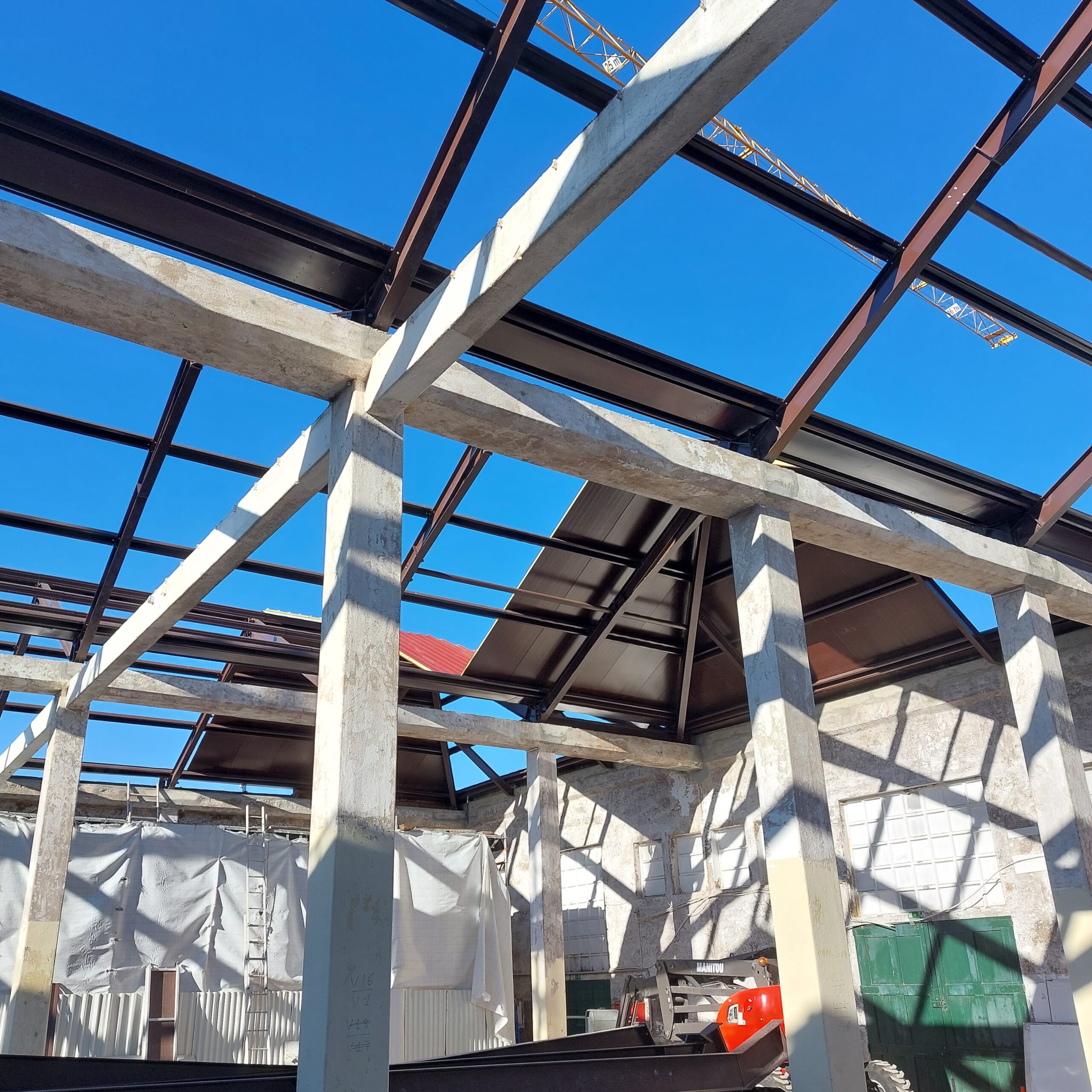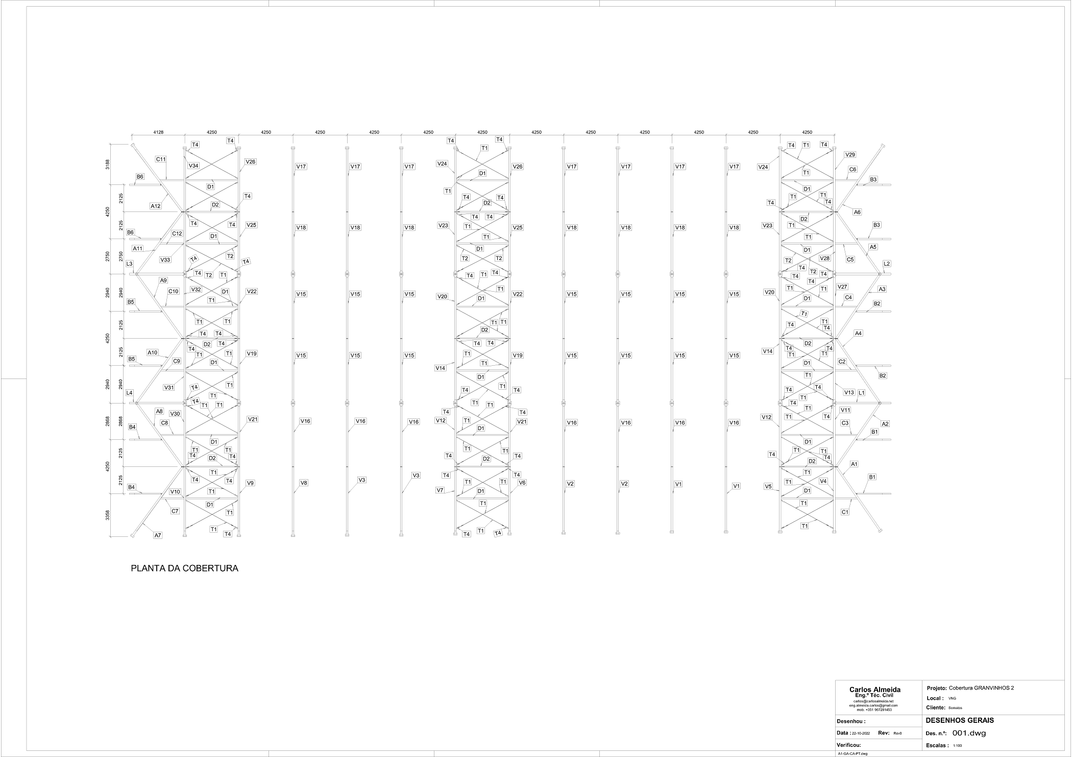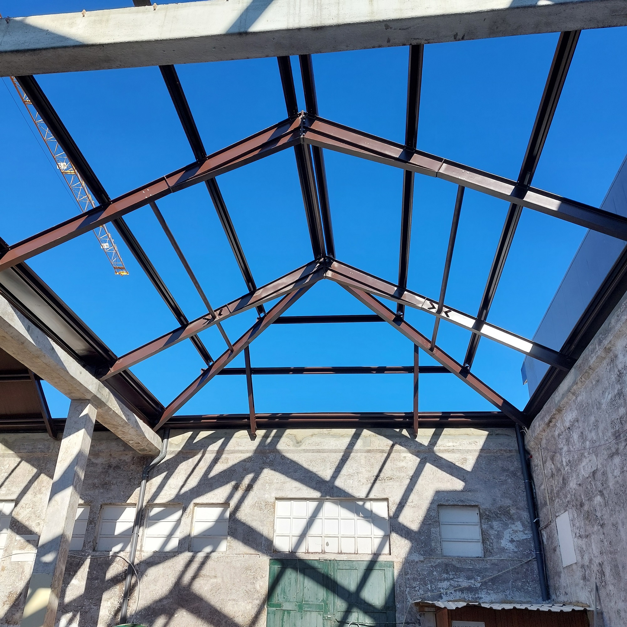 Serviços: Estudo prévio da cobertura, cálculo estrutural, levantamento do existente, modelação e desenhos de produção da estrutura